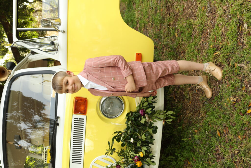 בלייזר מחוייט משובץ ורוד לבן