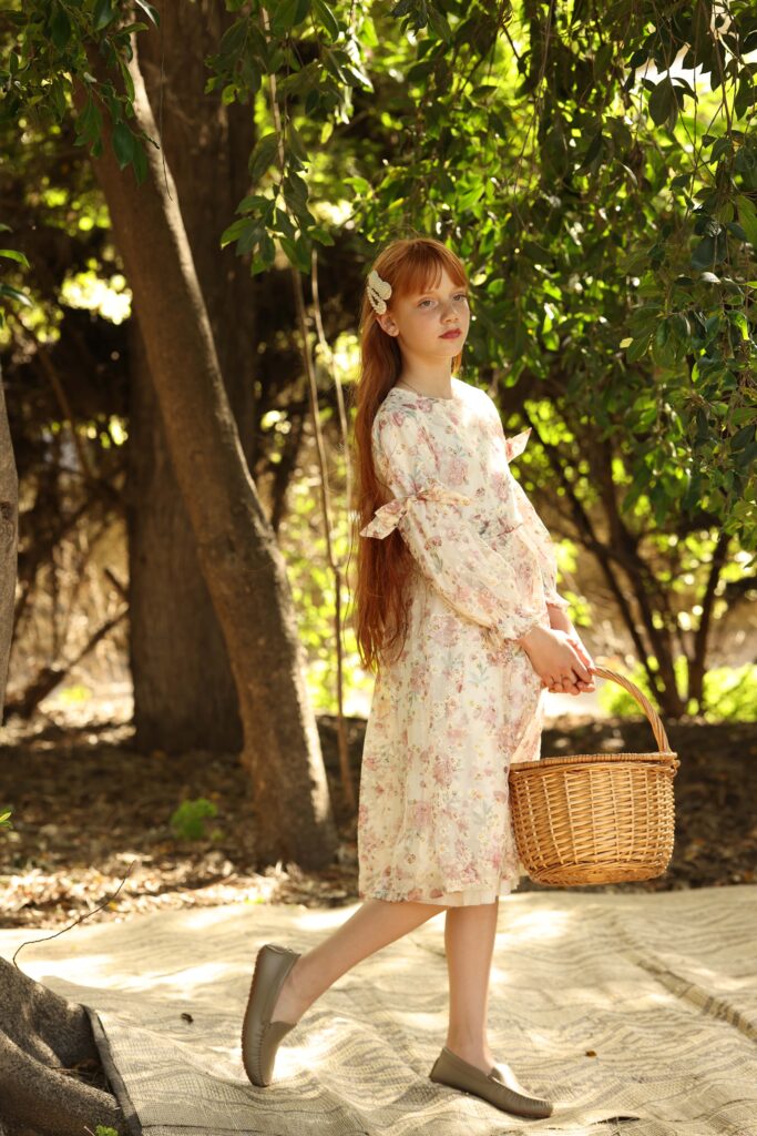 שמלה משי פרחונית אלגנטית ורוד בז’