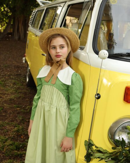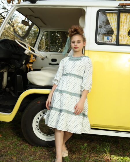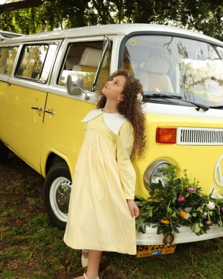 שמלה משי פרחונית אלגנטית ירוק בז’