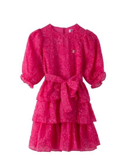 שמלה משי פרחונית אלגנטית ורוד בז’